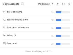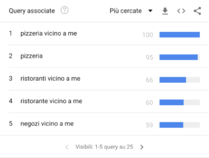 Altre volte, anziché indicare una località, aggiungiamo semplici espressioni avverbiali. Quella più tipica e diffusa è “vicino a me”, che negli ultimi anni sta avendo un’impennata (complice il Covid, ma era una tendenza già in atto). Di seguito qualche dato.