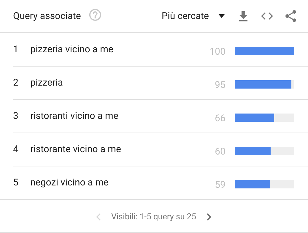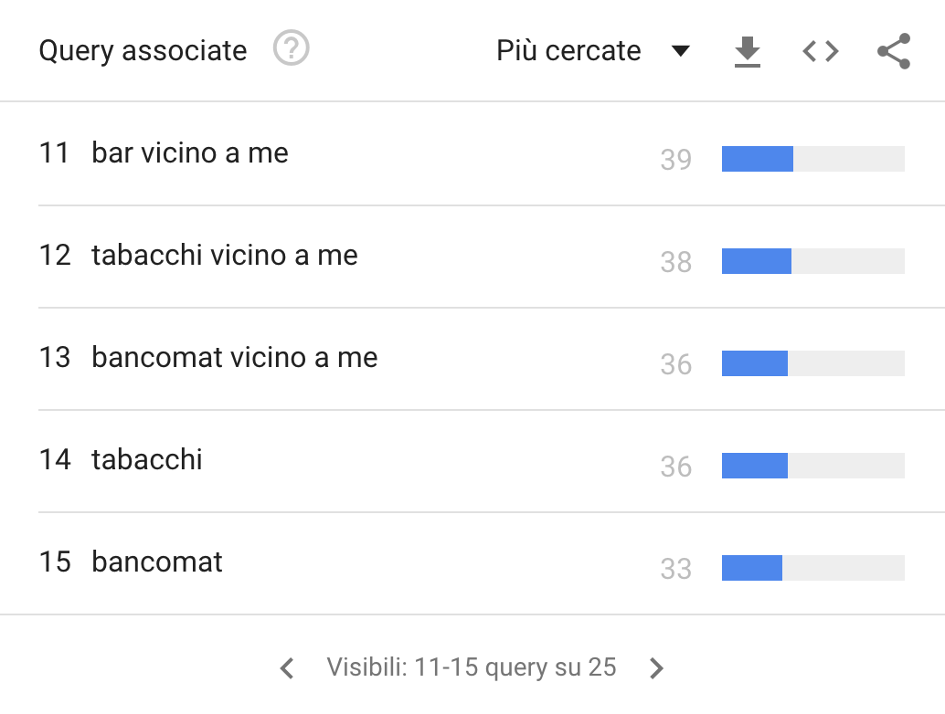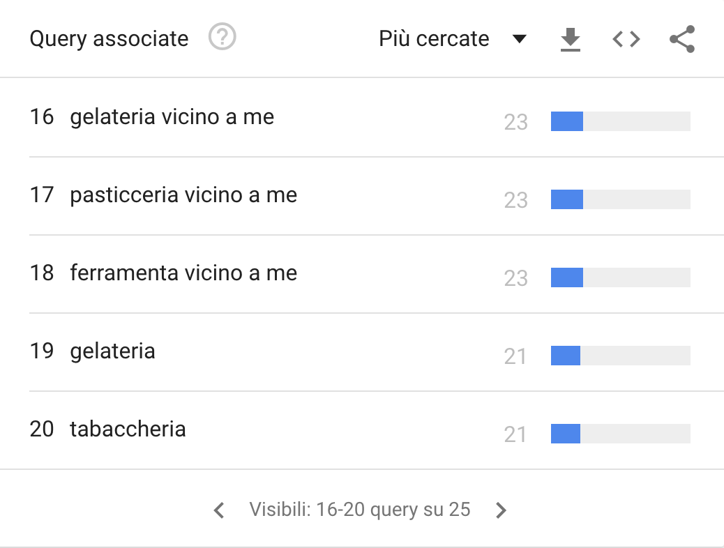 Altre volte, anziché indicare una località, aggiungiamo semplici espressioni avverbiali. Quella più tipica e diffusa è “vicino a me”, che negli ultimi anni sta avendo un’impennata (complice il Covid, ma era una tendenza già in atto). Di seguito qualche dato.